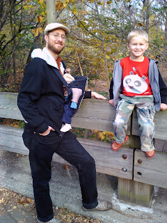 This year was the first-ever Brooklyn marathon. The entire course was in Prospect Park, and Erin was volunteering at one of the water stations, so we went out to help cheer on the runners. Well, a few of the runners, anyway. By the time we made it out the door (babies have amazing delay tactics at their disposal, it's almost like they WANT their parents to be stuck indoors indefinitely), the race was almost over. But we did get to cheer for the last few runners, and then take a nice walk in the park... And here's a bonus shot of our fearless hero sleeping, safe at home.